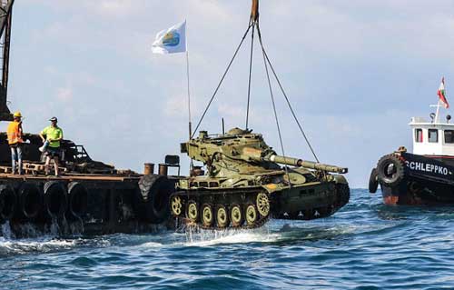 Foto-foto yang datang dari Lebanon ini mungkin sedikit membuat kita terenyuh, bagaimana tidak, tank ringan AMX-13 kanon dan ranpur APC AMX-13 VCI (Véhicule de Combat d’Infanterie) ditenggelamkan dengan tenang ke laut. Persisnya ada 10 tank dan kendaraan lapis baja eks AD Lebanon yang sengaja ditenggelamkan untuk dijadikan artificial reef alias karang buatan.