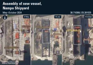 Kim juga mengunjungi Galangan Kapal Nampo pada Februari 2024, hanya beberapa bulan sebelum perakitan kapal tampaknya dimulai, melaporkan tentang ‘pembangunan berbagai kapal perang dan persiapan untuk rencana besar baru yang diputuskan dan ditetapkan oleh Kongres WPK (Partai Pekerja Korea) kedepalan.