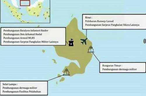 Karena diproyeksi ancaman untuk Natuna berasal dari aspek udara, maka unsur hanud (pertahanan udara) terasa menjadi prioritas. Mulai dari hanud terminal, komponen jet buru sergap F-16 Fighting Falcon dan Sukhoi Su-27/Su-30 dipastikan mampu meng-cover area Natuna, terlebih Lanud Ranai kini sudah mampu didarati oleh dua jet tempur tersebut. Sementara dari hanud titik atau point defence, Detasemen Hanud Paskhas dan Arhanud Kostrad sudah punya pengalaman menggelar sistem senjatanya di beberapa obyek vital Natuna. Insiden kecelakaan dalam penembakkan kanon Giant Bow twin gun 23 mm milik Kostrad di Natuna pada bulan Mei 2017, menjadi catatan kelam yang tak pernah dilupakan dalam latihan tempur hanud.