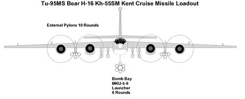 Tu-95MS resminya diawaki oleh 7 orang, termasuk dua pilot dan kopilot. Penerbangan terlama yang dilakukan Tu-95MS adalah dalam misi patroli selama 17 jam di atas Kepulauan Aleutian pada Mei 2011. Tu-95MS berhasil meluncurkan enam rudal jelajah presisi tinggi di sasaran darat selama uji terbang taktis yang berlangsung 7 jam pada Juni 2014. (Gilang Perdana)