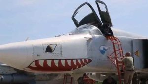 Corak mulut hiu pada jet tempur SEAD dimulai oleh F-105G, kemudian diterapkan pula pada F-4G Wild Weasel. Sedangkan untuk MiG-29 Ukraina, sejatinya telah menghiasi Fulcrumnya dengan mulut hiu di masa lalu: setidaknya satu MiG-29 Fulcrum-C dari Istrebitel’nyy Aviatsionnyy Polk di Pangkalan Udara Vasylkiv dekat Kyiv, memakai seni hidung yang aneh.