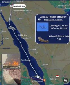 Dari kabar tak resmi yang beredar, algojo atas serangan langsung ke Hudaydah, melibatkan sekitar lima unit F-35I Adir. Di tengah konflik dengan Hamas yang masih membara, jalur penerbangan yang dipilih oleh kelompok jet tempur penyerang ini dengan menelusuri Laut Merah, yang pada sisi kiri terdapat teritorial Arab Saudi, dan pada sisi kanan terdapat teritorial Mesir dan Sudan.