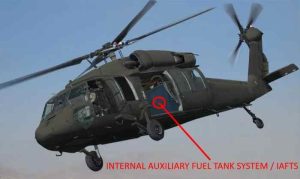 Internal Auxiliary Fuel Tank System (IAFTS) untuk Black Hawk biasanya menggunakan tangki 680–870 liter per unit (sekitar 180–230 US gallons). Dua tangki seperti ini memang bisa dipasang berdampingan di kabin, jadi total kapasitas tambahan sekitar 1.360–1.740 liter. Tangki ini dipasang di rangka khusus dengan sistem pompa ke tangki utama, dan tetap menyisakan sedikit ruang untuk kargo/personel.
