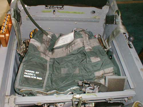 Selain bekal senjata, pada ACES II survival kit juga terdapat raft (perahu karet) untuk 1 orang, raft repair kit, compass, signal flare, signal kit, mirror, firt aid kit, radio, water drinking, manual surivival, sheath knife, aluminum blanket, baterai, whistle, sea dye marker, plastic bag, matches. (Gilang Perdana)