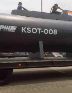 Foto-foto di media sosial memperlihatkan KSOT berupa kapal selam mini, tampil dengan warna hitam. Yang menarikl, terdapat identitas PT PAL dan nomer 008.